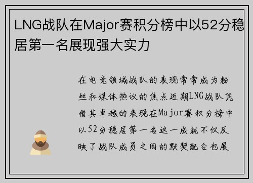 本文将深入分析DOTA2战队RNG选手的个人技术与战术素养,探讨他们在比赛中的表现及其背后的支撑因素。首先,从个人技术层面解析RNG选手独特的操作技巧和英雄使用策略,接着探讨他们在团队配合中的作用以及如何通过沟通与协作增强整体实力。然后,我们将讨论RNG战队在战略制定上的灵活性与适应能力,最后关注心理素质对选手表现的重要影响。通过这些方面的系统分析,读者将更全面地理解RNG战队在DOTA2赛场上的...