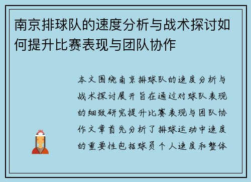 本文主要围绕北京极限运动队的表现分析与控制策略的得失进行探讨。首先,我们将从队伍的整体表现出发,分析其在不同赛事中的成绩与不足之处;其次,将重点讨论运动员的心理素质及其对比赛结果的影响;第三部分将探讨训练策略与管理措施如何影响运动员的竞技状态;最后,通过对目前存在问题的总结,提出改进和优化建议。整篇文章旨在通过系统分析,为北京极限运动队未来的发展提供参考与借鉴。 1、队伍整体表现评估 北京极限运...